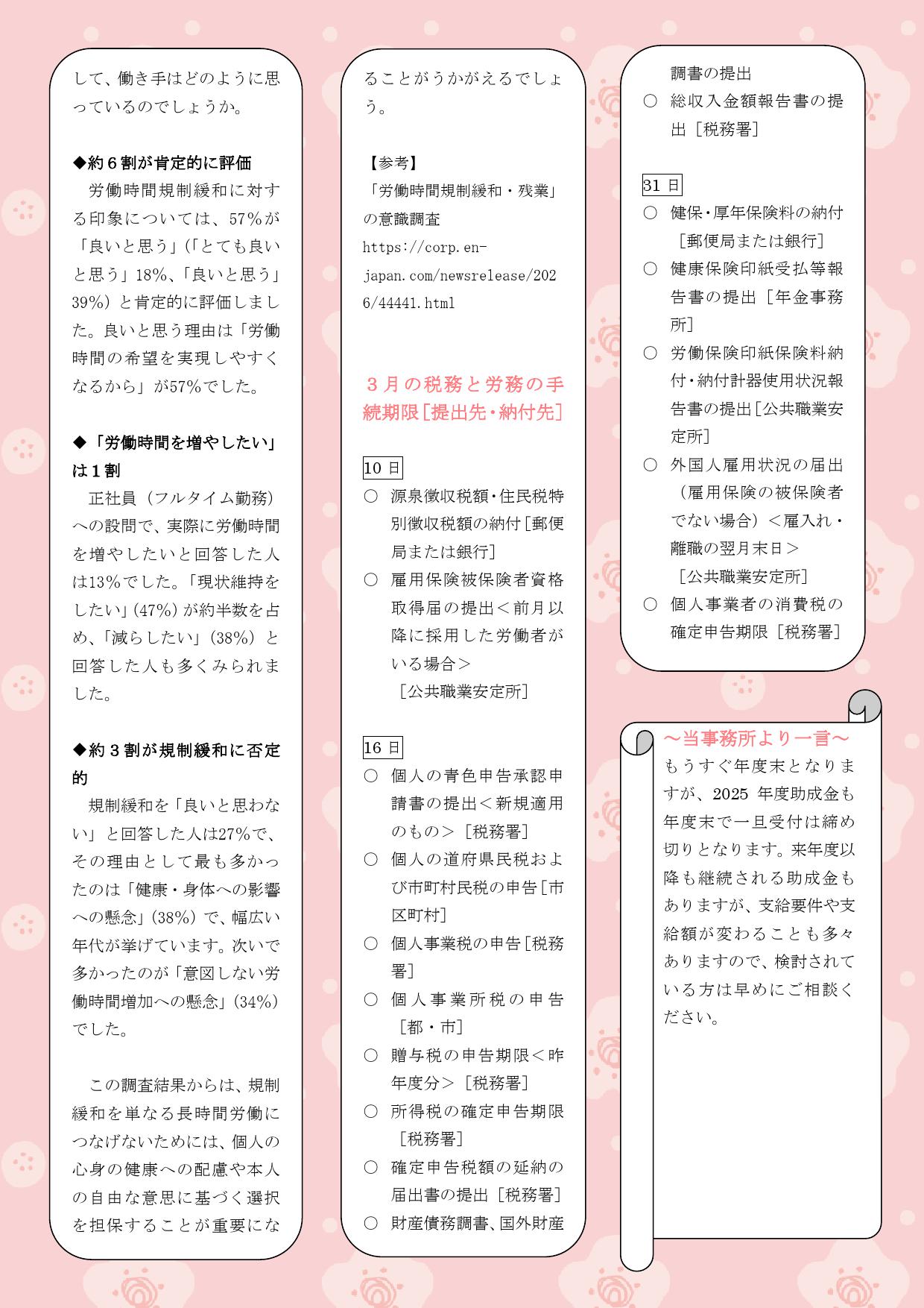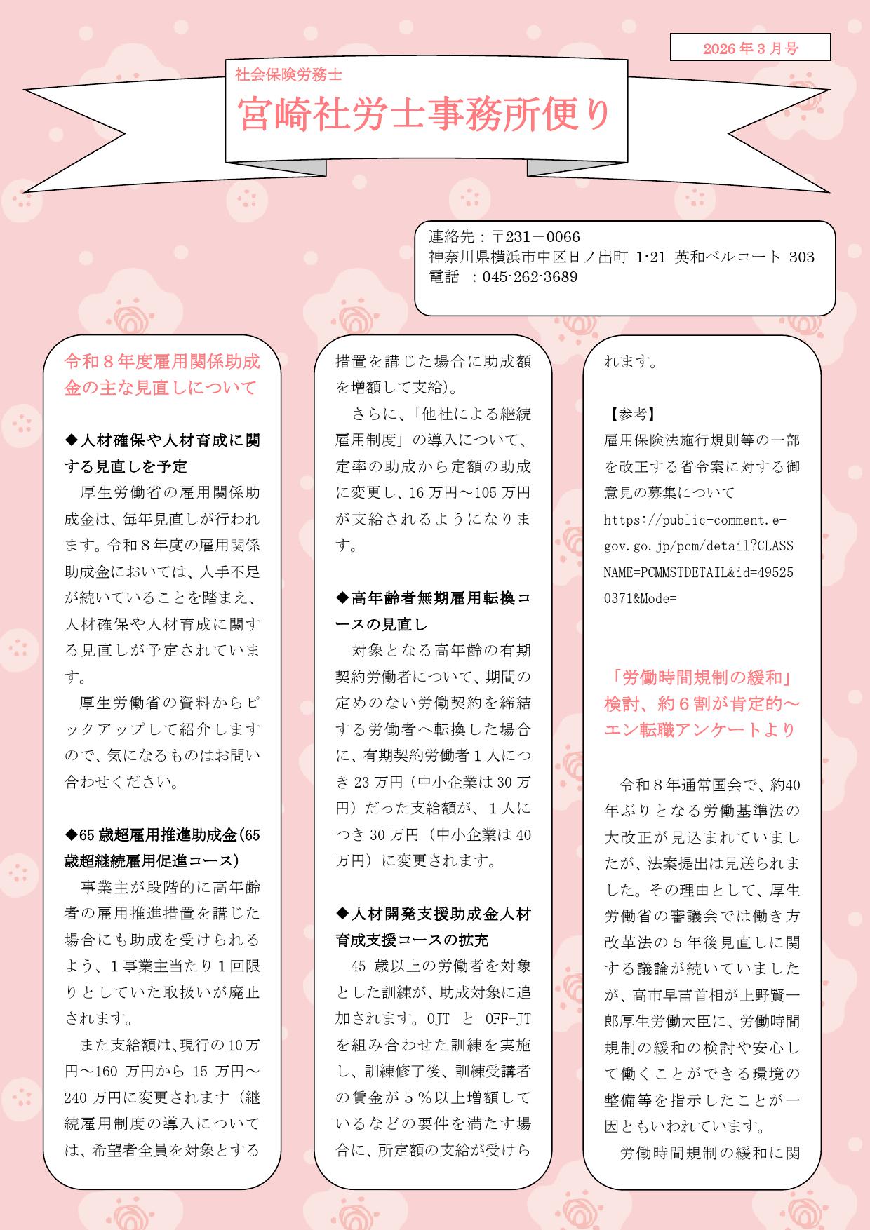 事務所便り3月号(2026年3月号)を掲載しました。